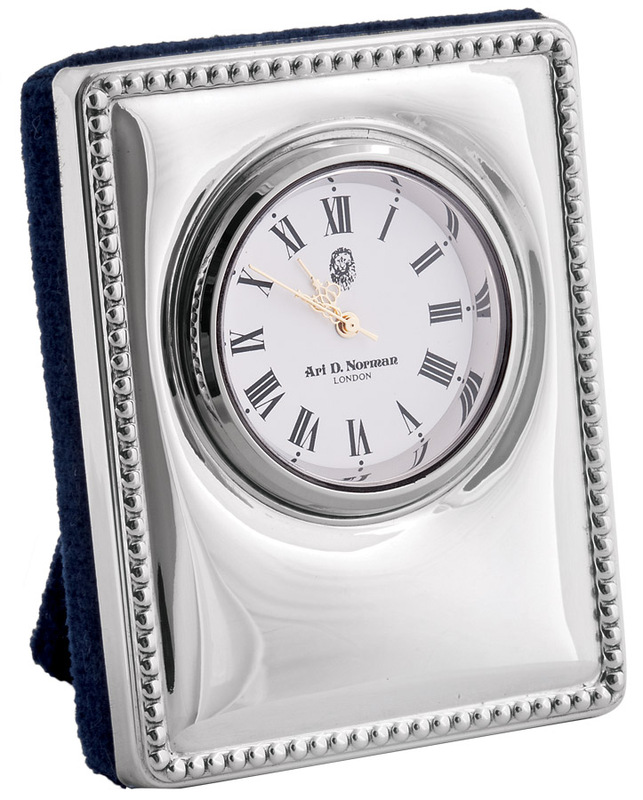 Clock Beaded Pattern Quartz Design with Blue Velvet Back English Sterling Silver 2 5/8" X 2". SKU #: CLK401.