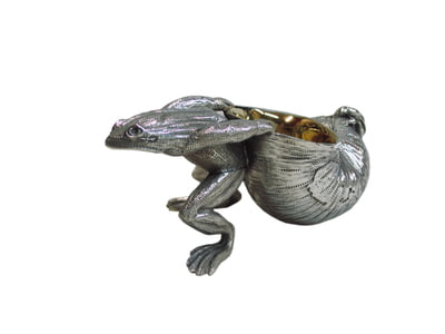 Frog Dragging Conch Salt w/ Silver Plate Spoon English Silver Plate. SKU #: C902.