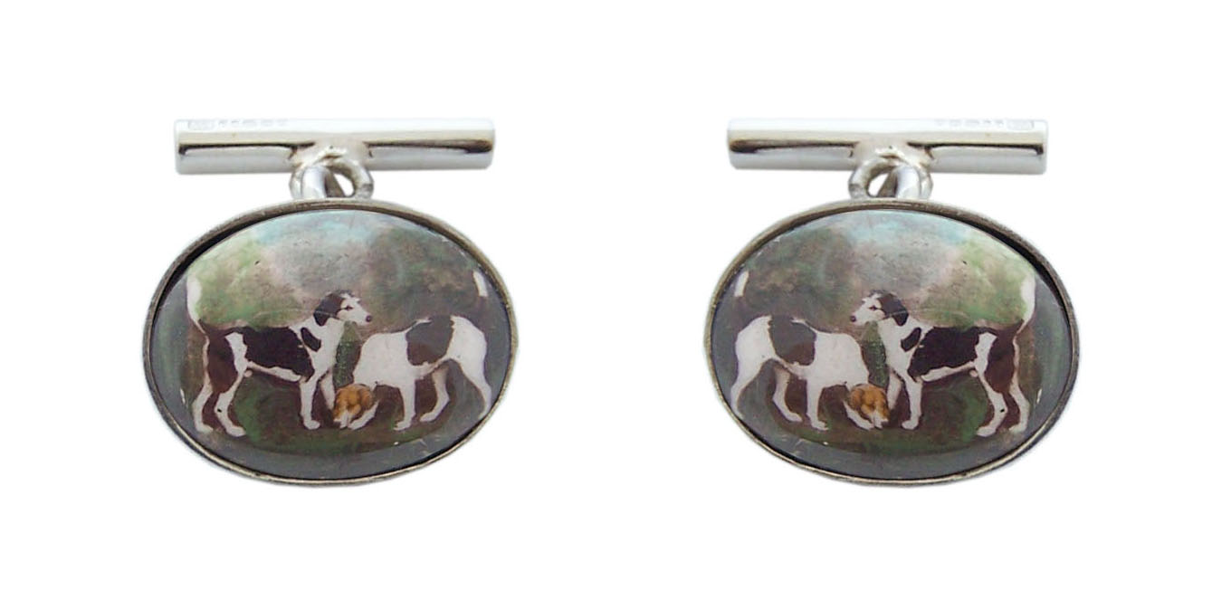 CU459 Sterling Silver Enamel Gun Dog Cufflinks