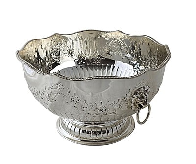 Scalloped Embossed & Fluted 13" Bowl with Ring Handle Lion Mask Handles C.1910. SKU #: ANT7005.