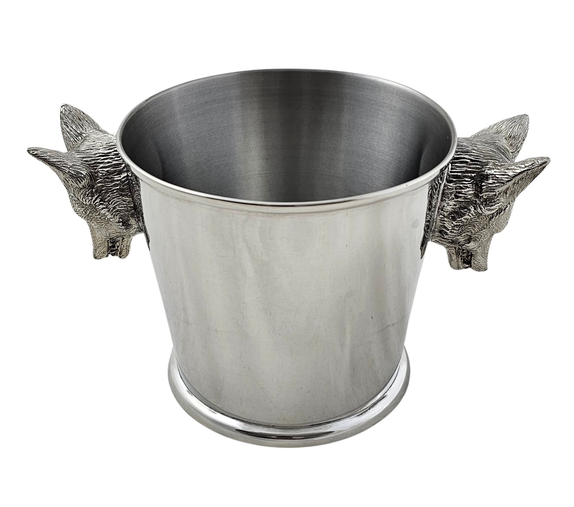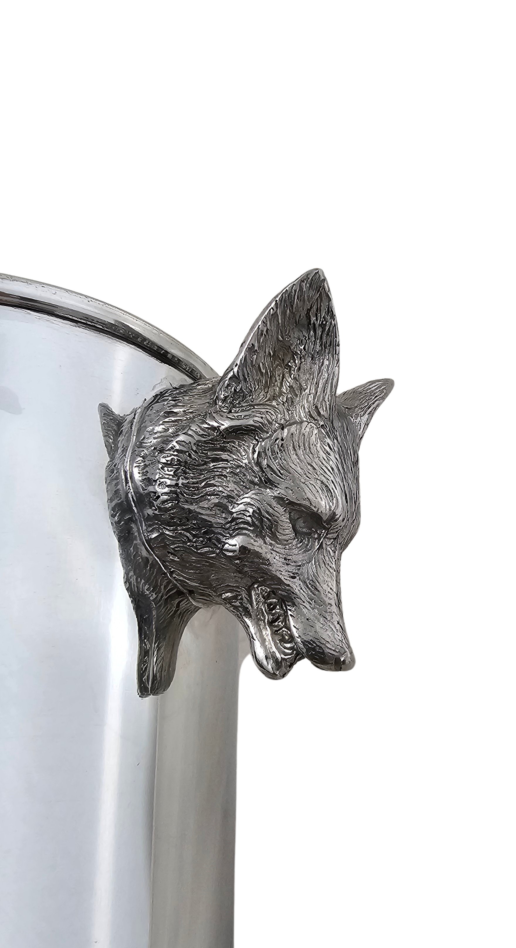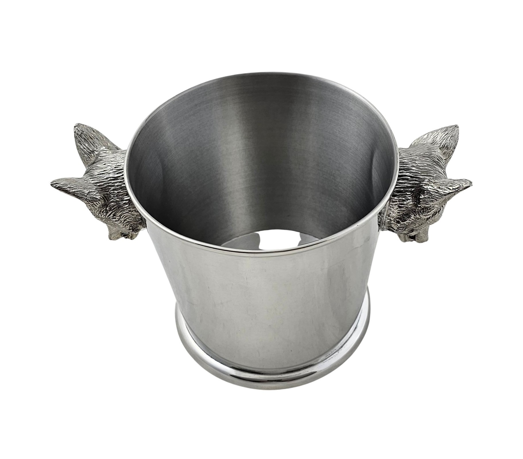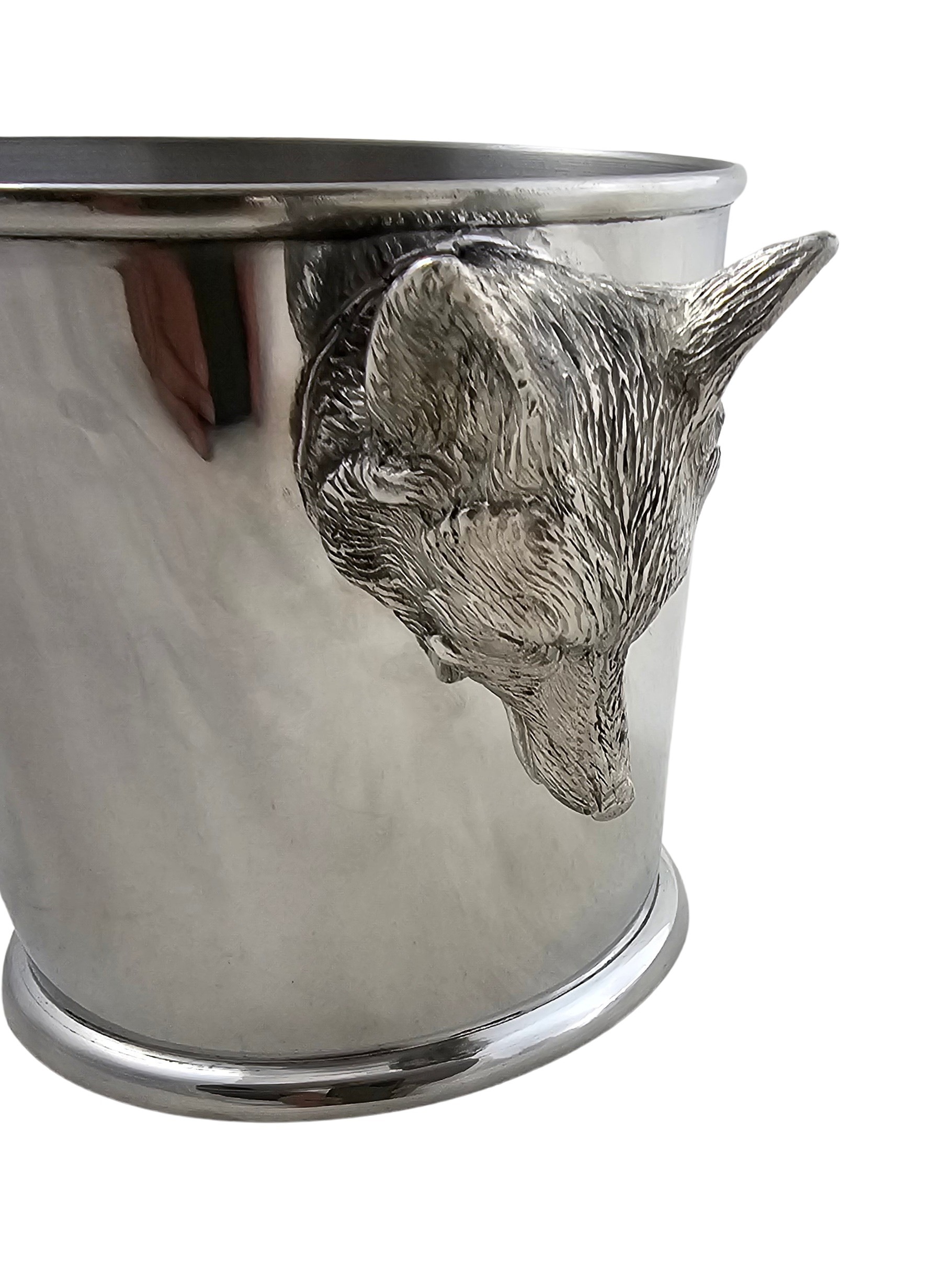 Pewter Medium Size Ice Bucket with Large Fox Head Handles