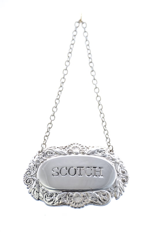 Decanter label, SCOTCH, Shell & Scroll Silver Plate. SKU #: C503SCOTCH.