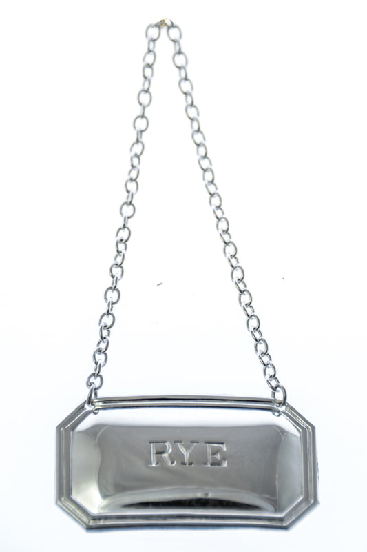 Decanter Label, Silver Plate, Cut Corner, Rye. SKU #: C1260RYE.