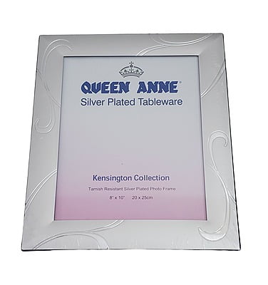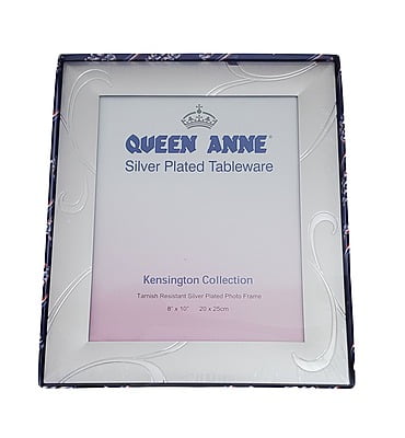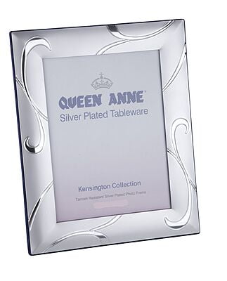 Our non-tarnish 8" x 10" silver-plated frame, made by Queen Anne in England, features a velveteen back and is offered at a highly reduced price. It makes the perfect gift or a stylish addition to the modern home. The sleek and elegant design adds a touch of sophistication to any décor, while the velveteen back ensures the frame sits securely and protects surfaces. Ideal for displaying cherished memories, this frame is both beautiful and functional.