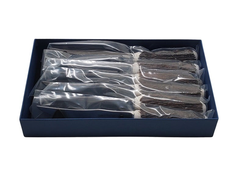 Steak Knives-Set/6 Dark Horn Handles Stainless Serrated Blade