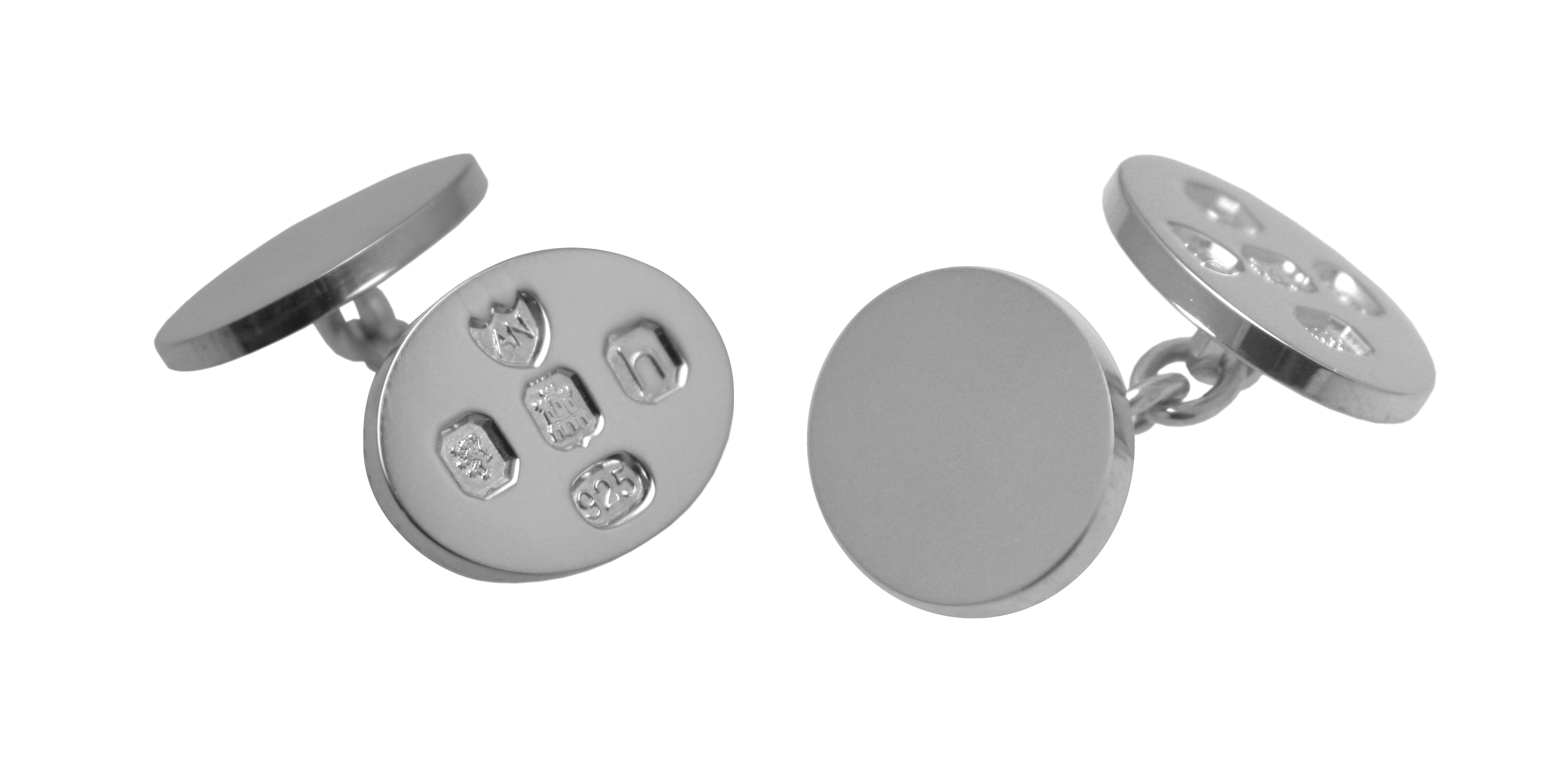 Cufflinks Heavy Gauge Feature Hallmark Oval Chain Link Design English Sterling Silver. SKU #: CU411.
