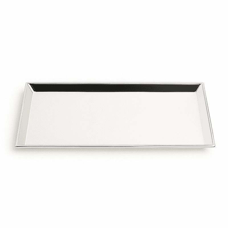 Features a refined silver-plated finish with raised edges for polished presentation