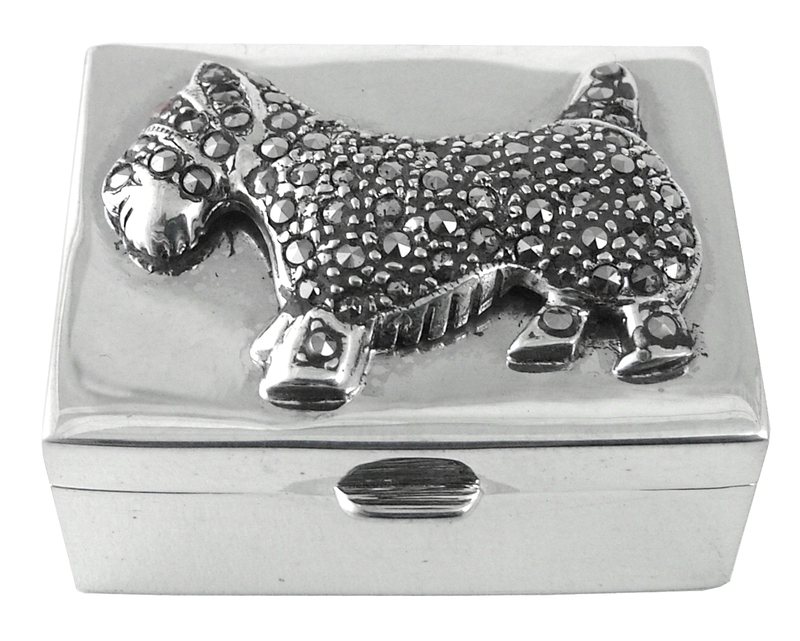 Pillbox Dog with Marcasite English Sterling Silver. SKU #: PB216.