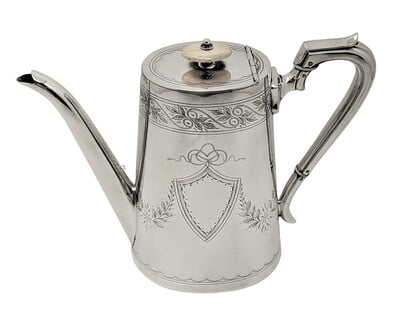 Coffee Pot Oval Engraved English Silver Plate c.1865