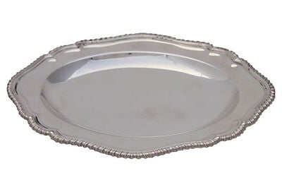 Oval English platter with gadrooned edge. Made of silverplate in England around1880.