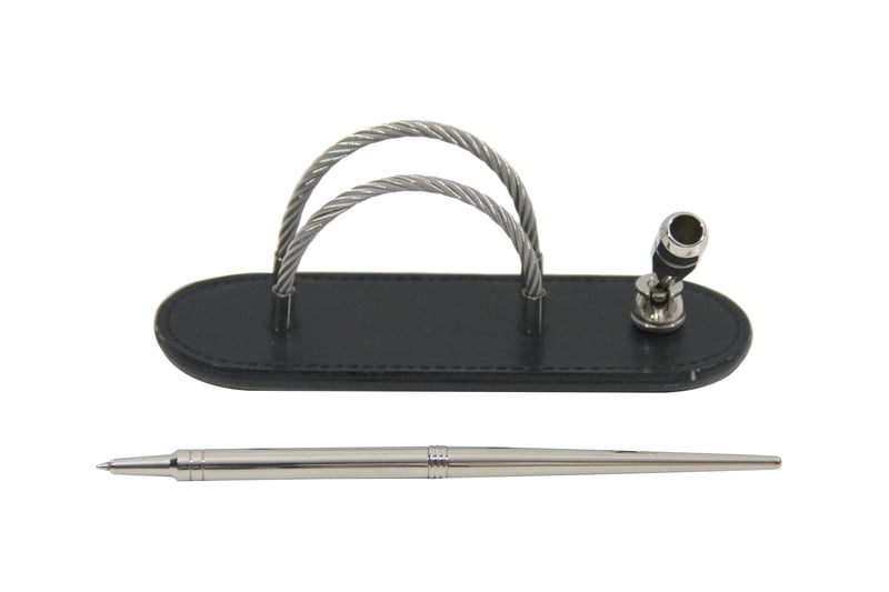 Leather/Chrome Pen Card Holder. SKU #: KMGWB31.