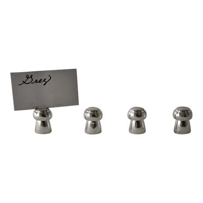 Set/4 Mushroom place card holders with cards silver plate