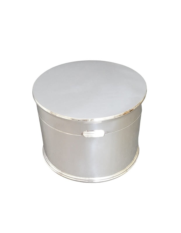 Round Hinged 5.5" Plain Box English Silver Plate. SKU #: C791.