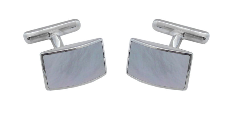 Cufflinks Rounded Rectangular Mother of Pearl Design English Sterling Silver. SKU #: CU433.