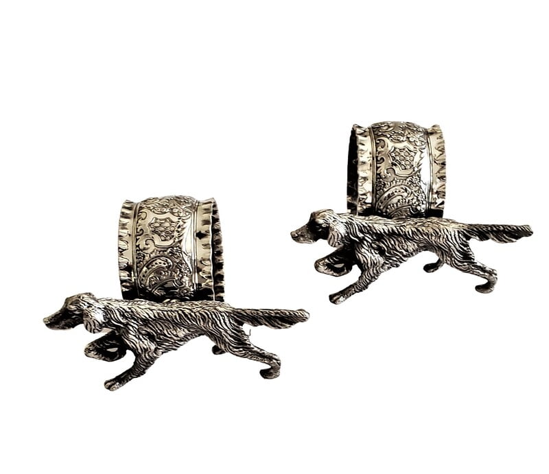 PAIR Figural Napkin Ring English Silver Plate c.1895 ENGLISH POINTER. SKU #: ANT2470.