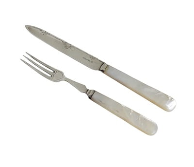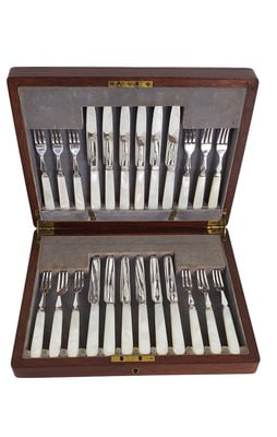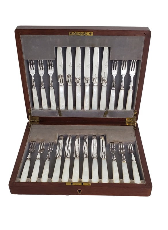 Set/12 Fruit Eaters Mother of Pearl/English Silver Plate c.1880. SKU #: A1476.