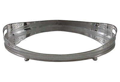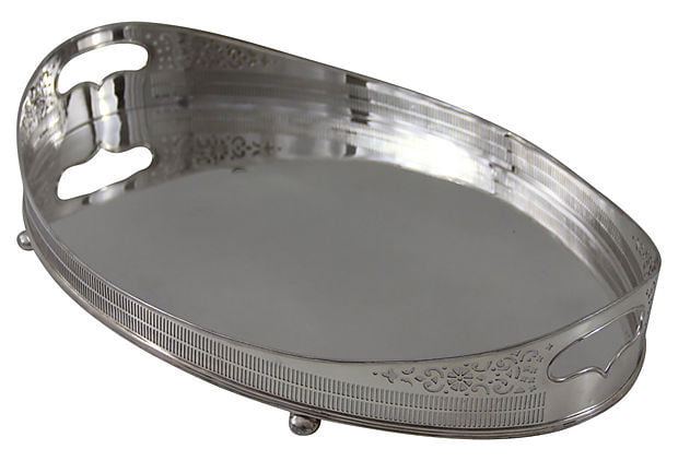 English 22" x 14" Oval Pierced Gallery Tray, Silver Plate c. 1870. SKU #: AN519.