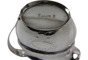 19th-century American Federal silver creamer. Bears the silversmiths name as well as a number of gathered sheaves of wheat, a standard symbol for American silver in the Federal period. The silversmith was active in New York 1773-1830. Silver content might be coin or something approaching 925.