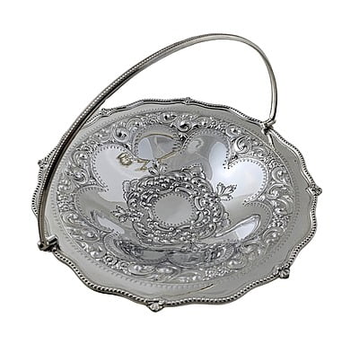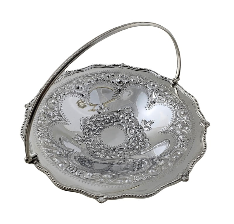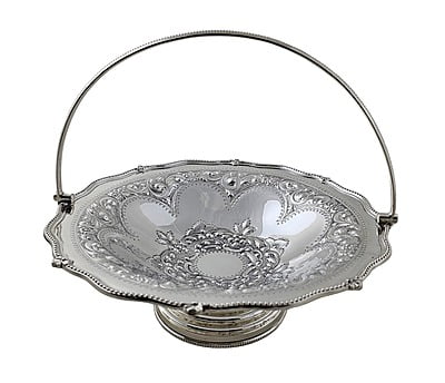 Basket Round Embossed English Silver Plate c.1850. SKU #: ANT2626.