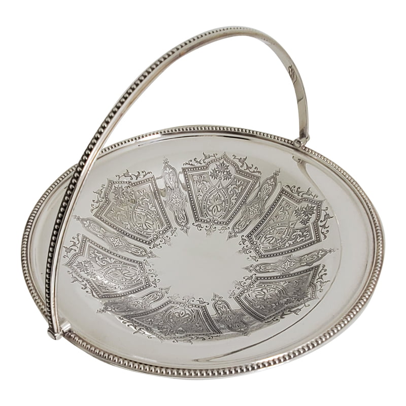 Basket Round Engraved English Silver Plate c.1865. SKU #: A308.