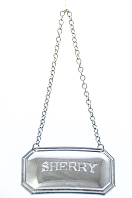 Decanter Label, Silver Plate, Cut Corner, Sherry. SKU #: C1260SHERRY.
