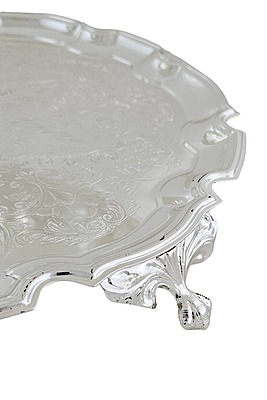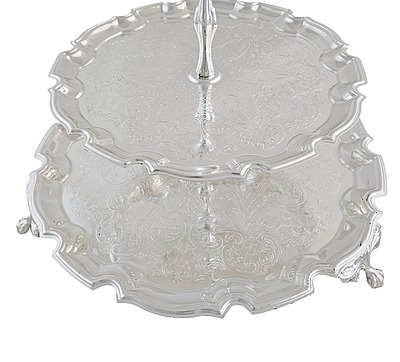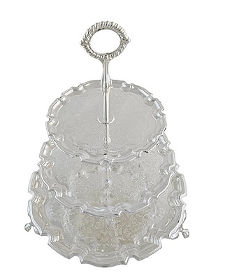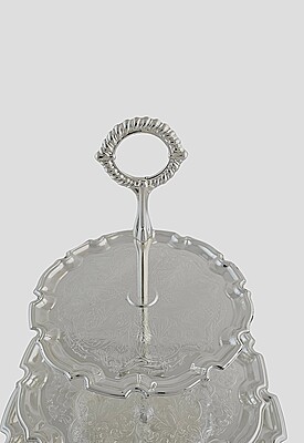 Queen Anne 3 Tier Engraved Chippendale Edge Cake Stand English Silver Plate (Tarnish Resistant).SKU #: 0/6380