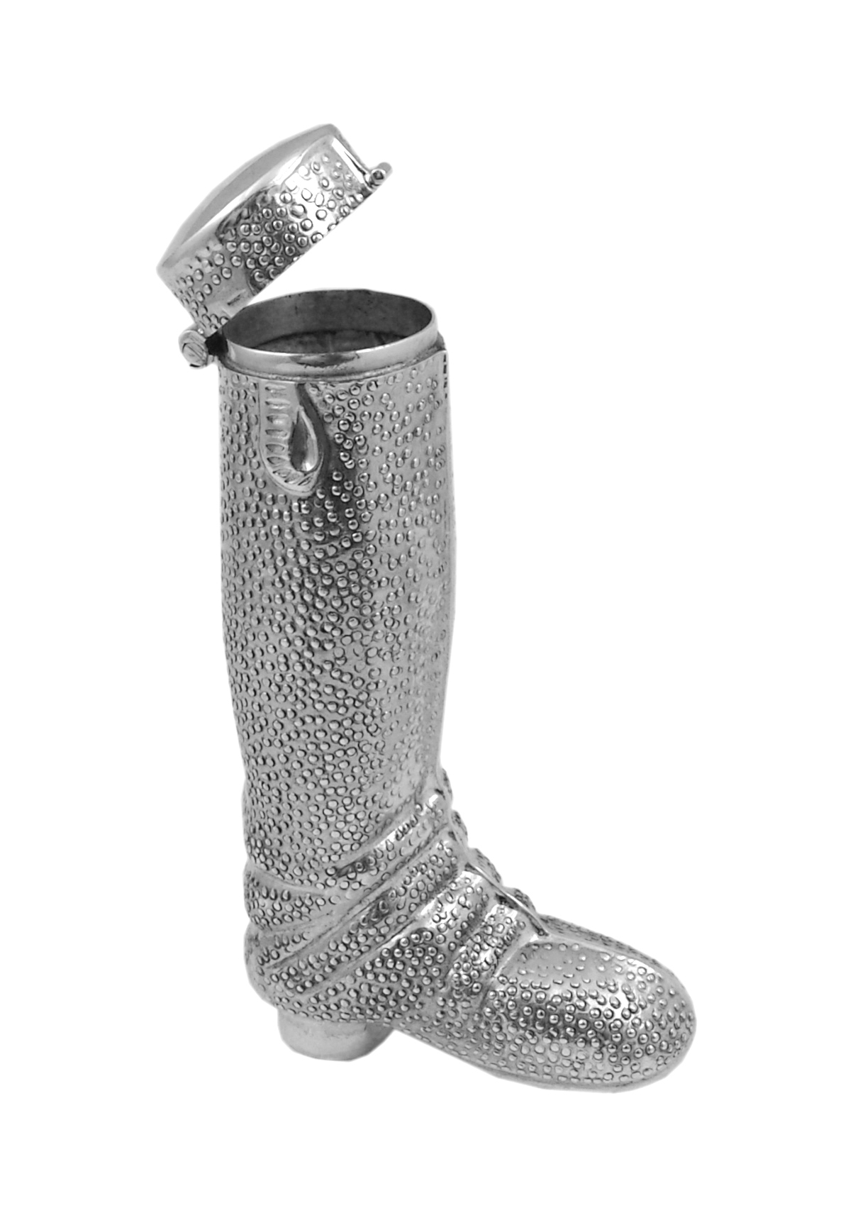 GT57 Victorian Inspired Riding Boot Shaped Pill Box or Toothpick Holder Sterling Silver