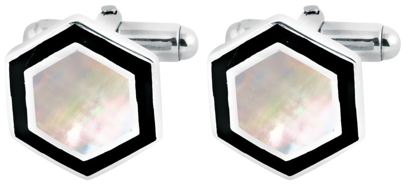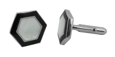 Sterling Silver Hexagonal Mother of Pearl and Black Enamel Cufflinks