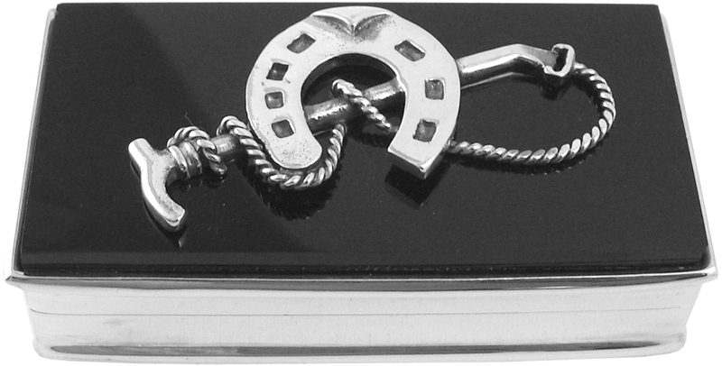 Pillbox Horseshoe & Whip Design English Sterling Silver. SKU #: PB200.