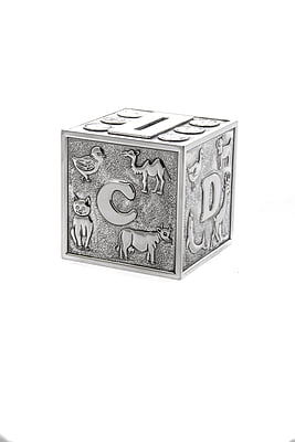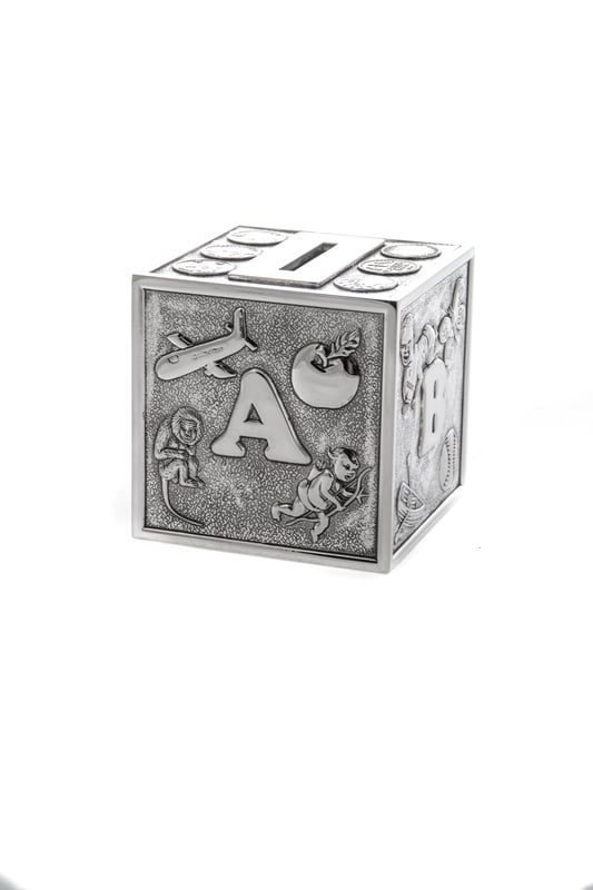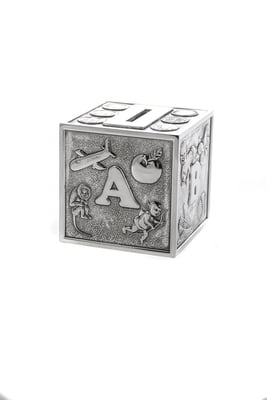 Alphabet Money Bank Silver Plate. SKU #: KMJA123.
