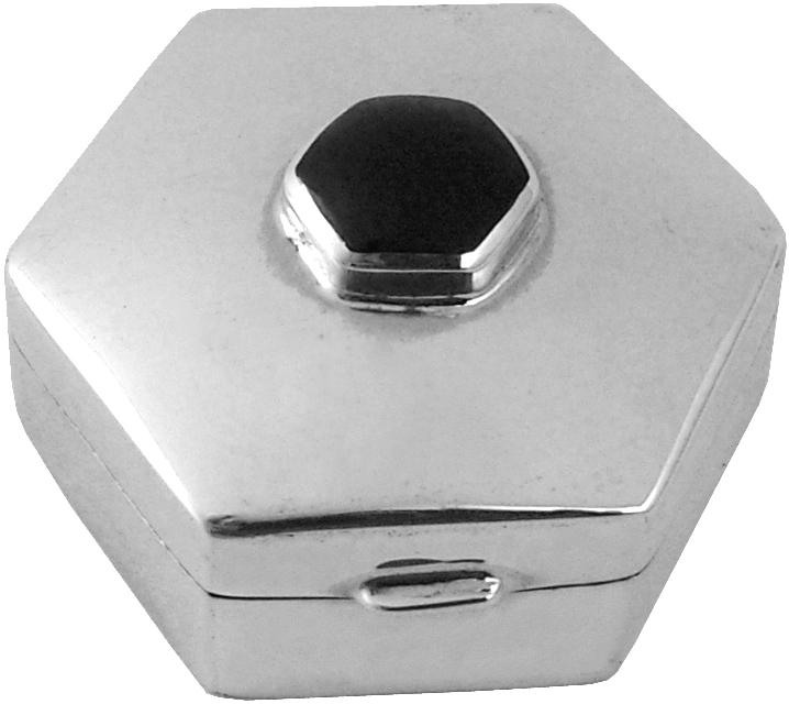Pillbox 5 Sided with Black Onyx Stone 1" Diameter English Sterling Silver. SKU #: PB209.