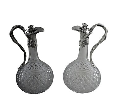 Pair Superb Claret Jugs English Sterling /Crystal. SKU #: ANT2507.
