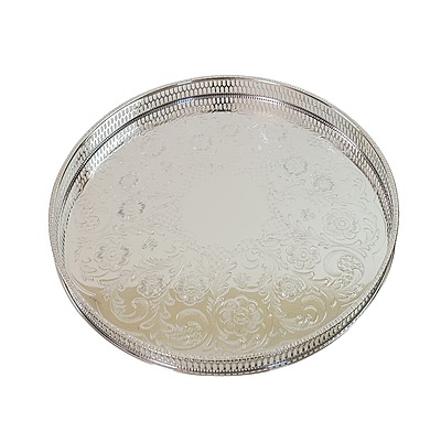 Gallery Tray 12" Engraved Pierced Gallery English Silver Plate c.1950. SKU #: ANT2226.