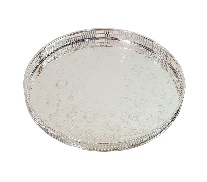 Gallery Tray 12" Engraved Pierced Gallery English Silver Plate c.1950