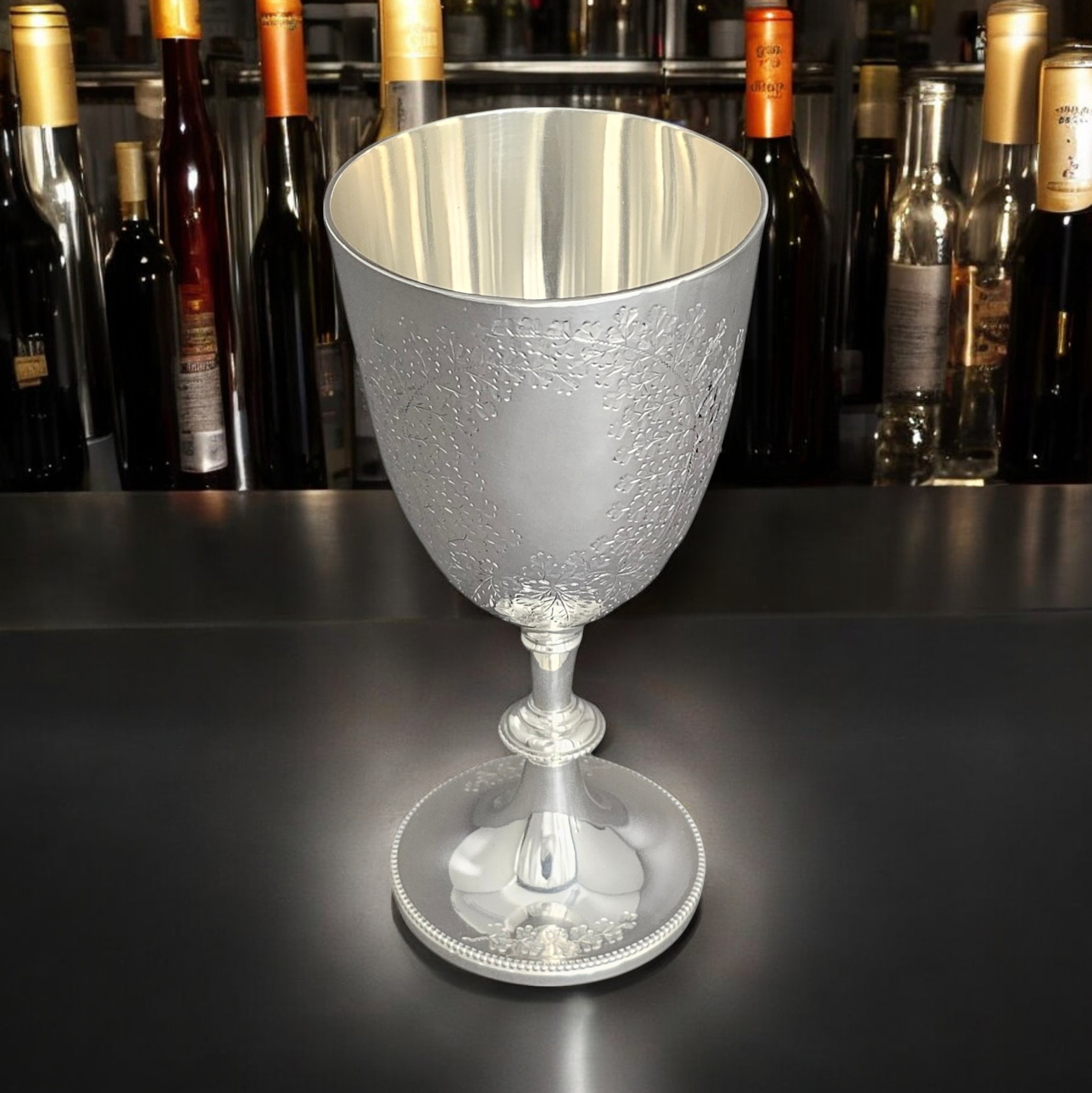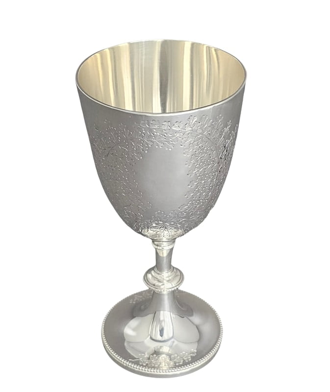 Goblet Fern Engraved 6" English Silver Plate c.1875. SKU #: ANT1742A.