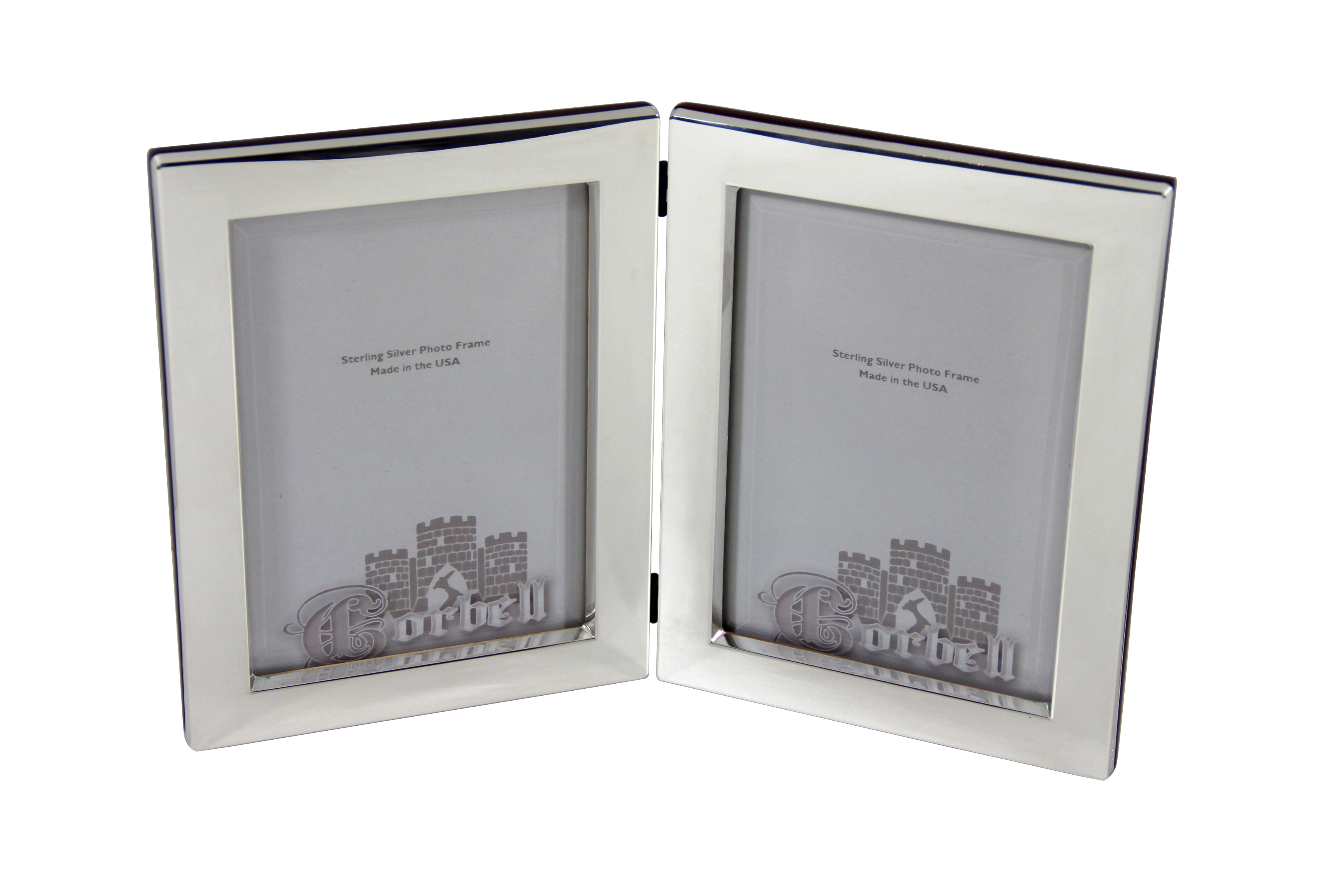 Sterling Silver Double Plain Frame Elegante Design with Wood Back-5" x 7". SKU #: J150/2W-D.