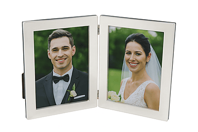 Celebrate love and lasting memories with this exquisite double hinged frame, crafted from thick sterling silver for a luxurious feel and flawless engraving surface. Designed to hold two 5" × 7" photographs, it’s ideal for showcasing wedding portraits, anniversary moments, or milestone celebrations.