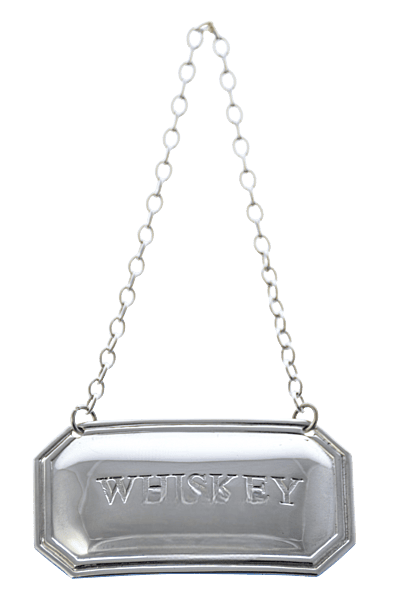 Decanter Label, Silver Plate, Cut Corner, Whiskey. SKU #: C1260WHISKEY.