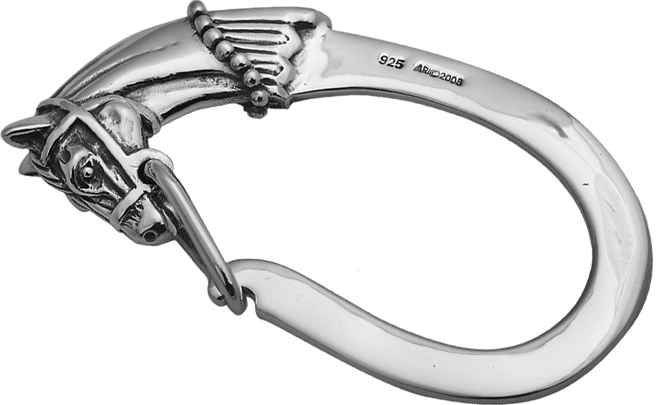 The perfect way to keep all your keys together, our horse head hook end key ring could make an excellent gift. The detailed engraved and embossed horse head has been meticulously crafted by our British Silversmiths and designed with the clasp to appear as reins.
