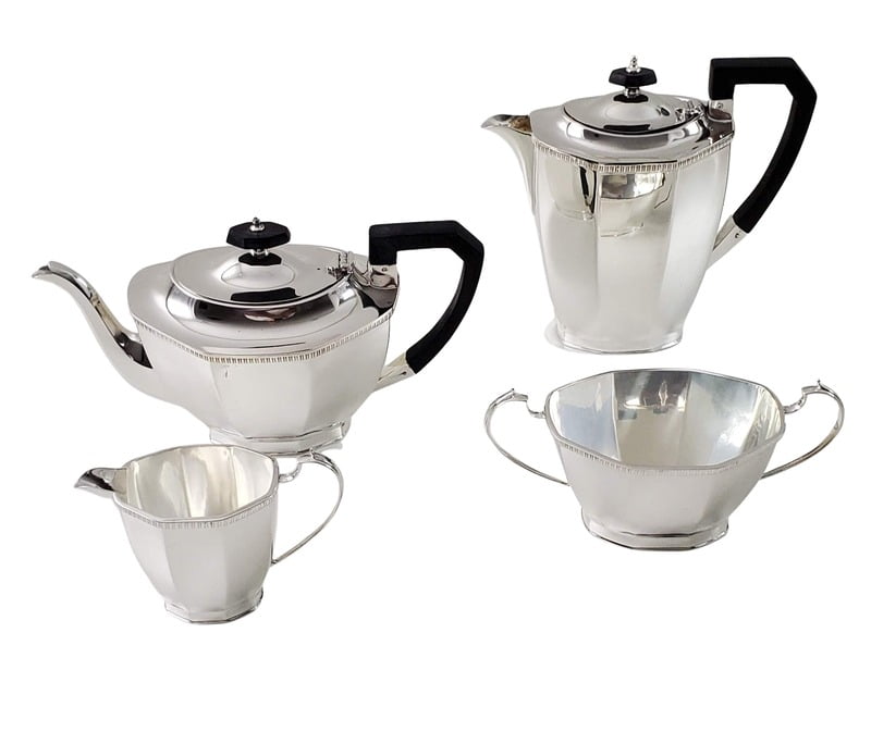 4 Piece Octagonal Tea & Coffee Set Silver Plate c.1900. SKU #: A909.