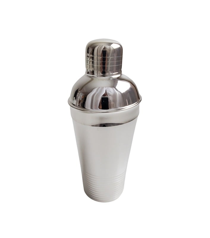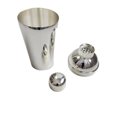 Silver-Plated Cocktail Shaker by Corbell, This three-piece shaker is fabricated entirely from silver-plated material, making it an essential accessory for concocting drinks and keeping them at the right temperature while mixing. The shaker comes with a strainer that allows you to filter your pre-shaken cocktails, and the silver plating is ideal for keeping your cocktails cool .
