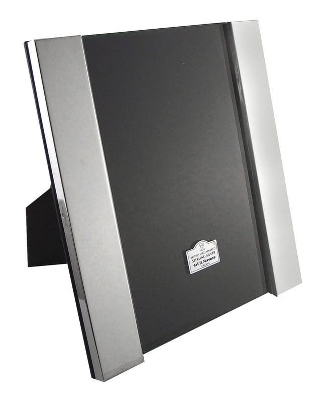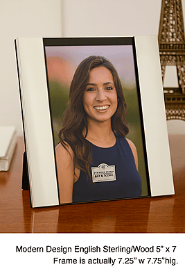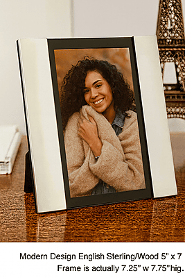 Modern Design English Sterling Silver Frame – Wood Back, 5" x 7" (Actual Size: 7.25" W x 7.75" H)