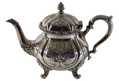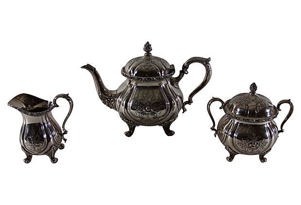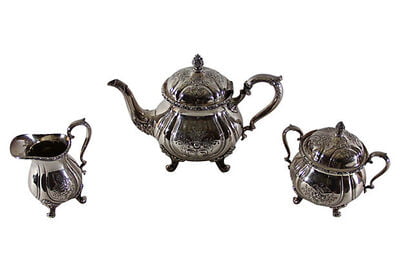 Tea Set 3-pc. Chased American Silver Plate c. 1940. SKU #: A9010.