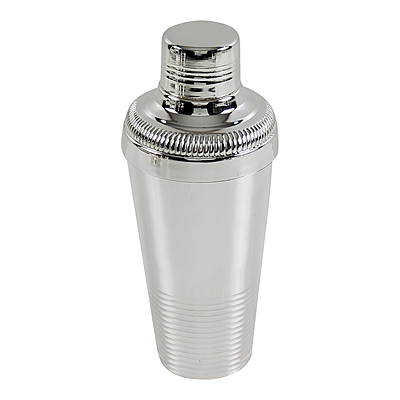 A Copy of an original ,This Silver-Plated Cocktail Shaker by Corbell, This three-piece shaker is fabricated entirely from silver-plated material, making it an essential accessory for concocting drinks and keeping them at the right temperature while mixing. The shaker comes with a strainer that allows you to filter your pre-shaken cocktails, and the silver plating is ideal for keeping your cocktails cool .