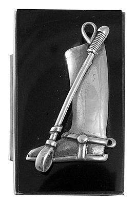 SILVER PILLBOX BOOT AND WHIP ON ONYX TOP. SKU #: PB237.