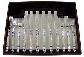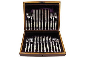 English Silver-Plate Boxed Dessert Set, S/12. SKU #: ANT3126.