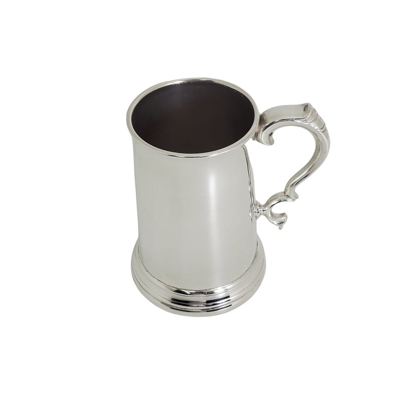 Pint Mug Plain Straight Sided w/Glass Bottom English Silver Plate c. 1890. SKU #: A374.