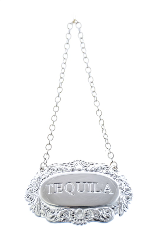 Decanter Label-Tequila, Shell & Scroll, Silver Plate. SKU #: C503TEQUILA.