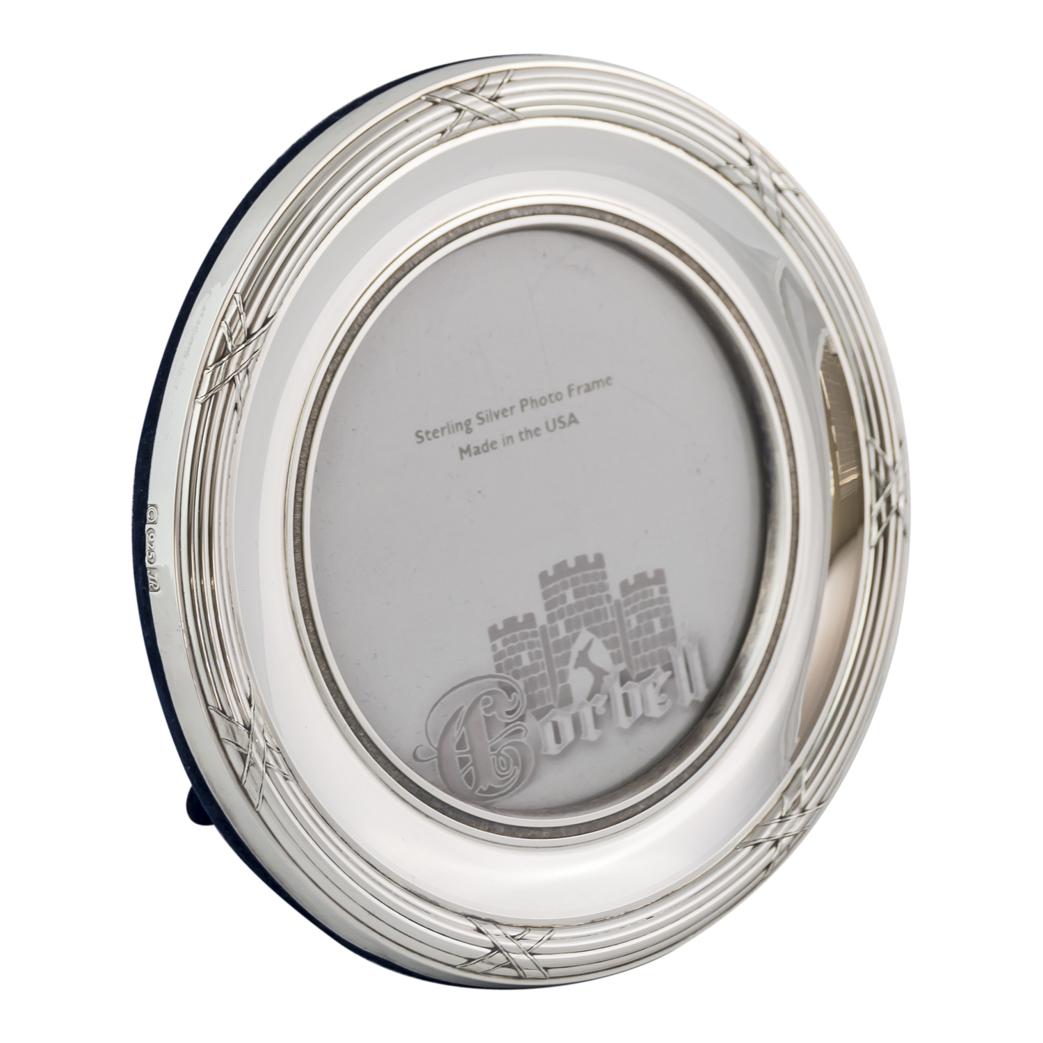 Sterling Silver Frame Ribbon & Reeds Round Design with Velveteen Back 4" Diameter
