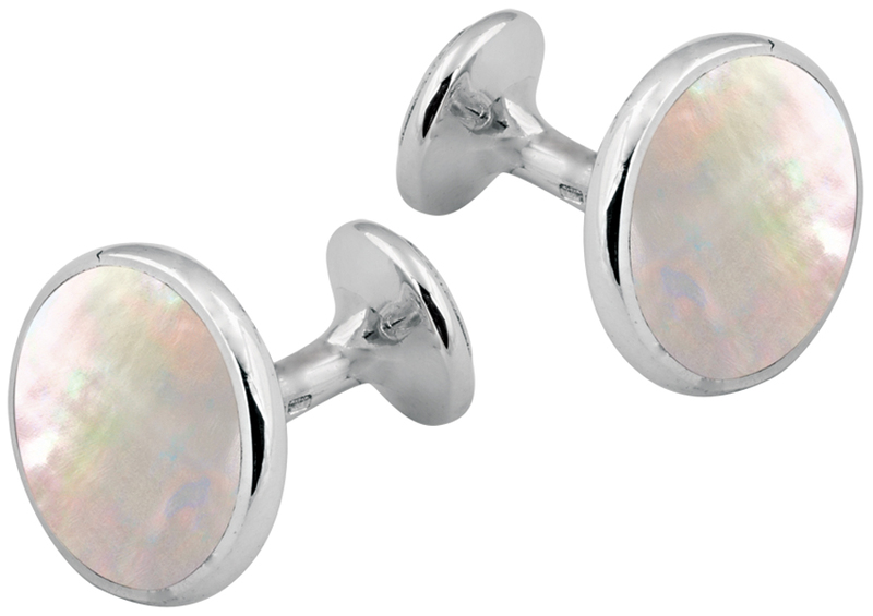Cufflinks Mother of Pearl Round Fixed Post Design English Sterling Silver